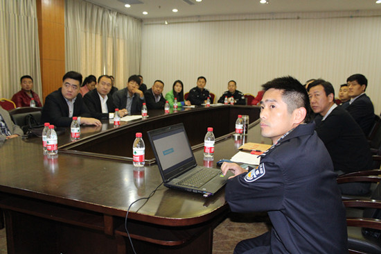 会上马昭宁主任对全市安防企业单位进行集中宣传培训“互联网+”便民服务平台具体操作事项,现场详细解答企业提问的各种问题。