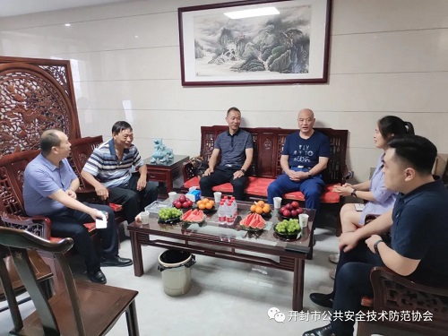 7月26日上午,深圳市安防协会会同郑州市安防协会到访开封市公共安全技术防范协会,与开封市公安局原国内安全保卫支队支队长侯锁柱、开封市安防协会会长马绍宁、副会长翟怡蒙、秘书长何志立、副秘书长侯燕峰等领导座谈,三方就创新开展协会间合作交流新方式和智慧社区、智慧交通建设交换意见并达成共识。