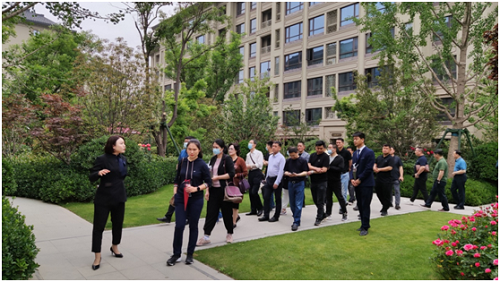 (考察团参观智慧社区现场图)