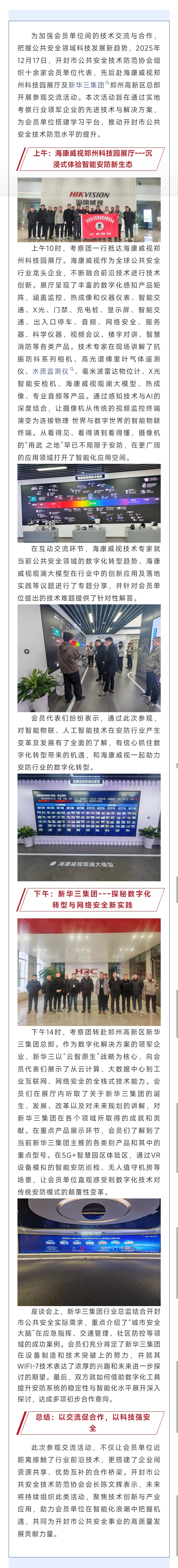 共探科技前沿,共商安全发展---开封市公共安全技术防范协会组织会员单位 赴海康威视、新华三集团参观交流
